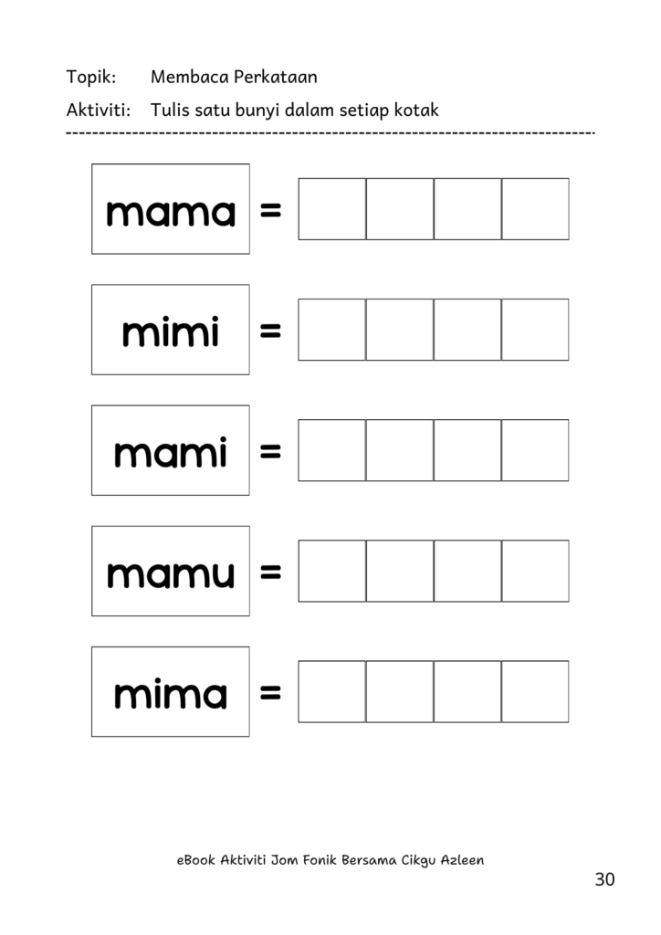 ๐ eBook latihan fonik siap pakai, berdasarkan urutan fonik Set 1-6 dalam Playbook Jom Fonik.