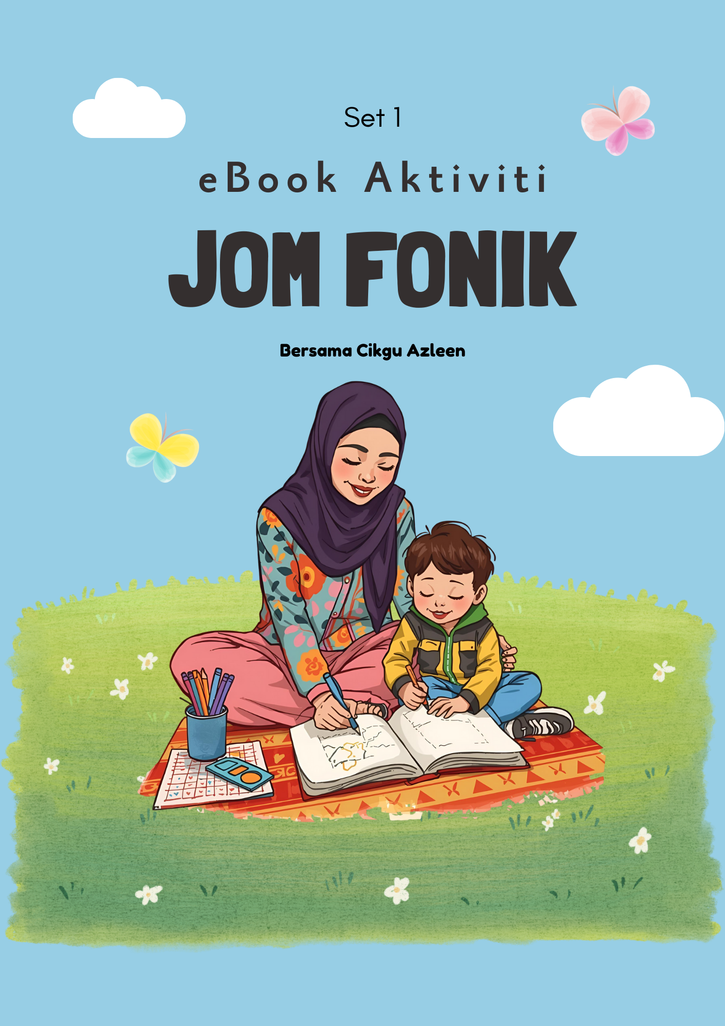 Ebook Aktiviti Jom Fonik direka khas untuk ibu bapa yang nak mula ajar fonik tanpa stress, tanpa menghafal ABC, dan tanpa pening fikir aktiviti apa nak buat setiap hari.